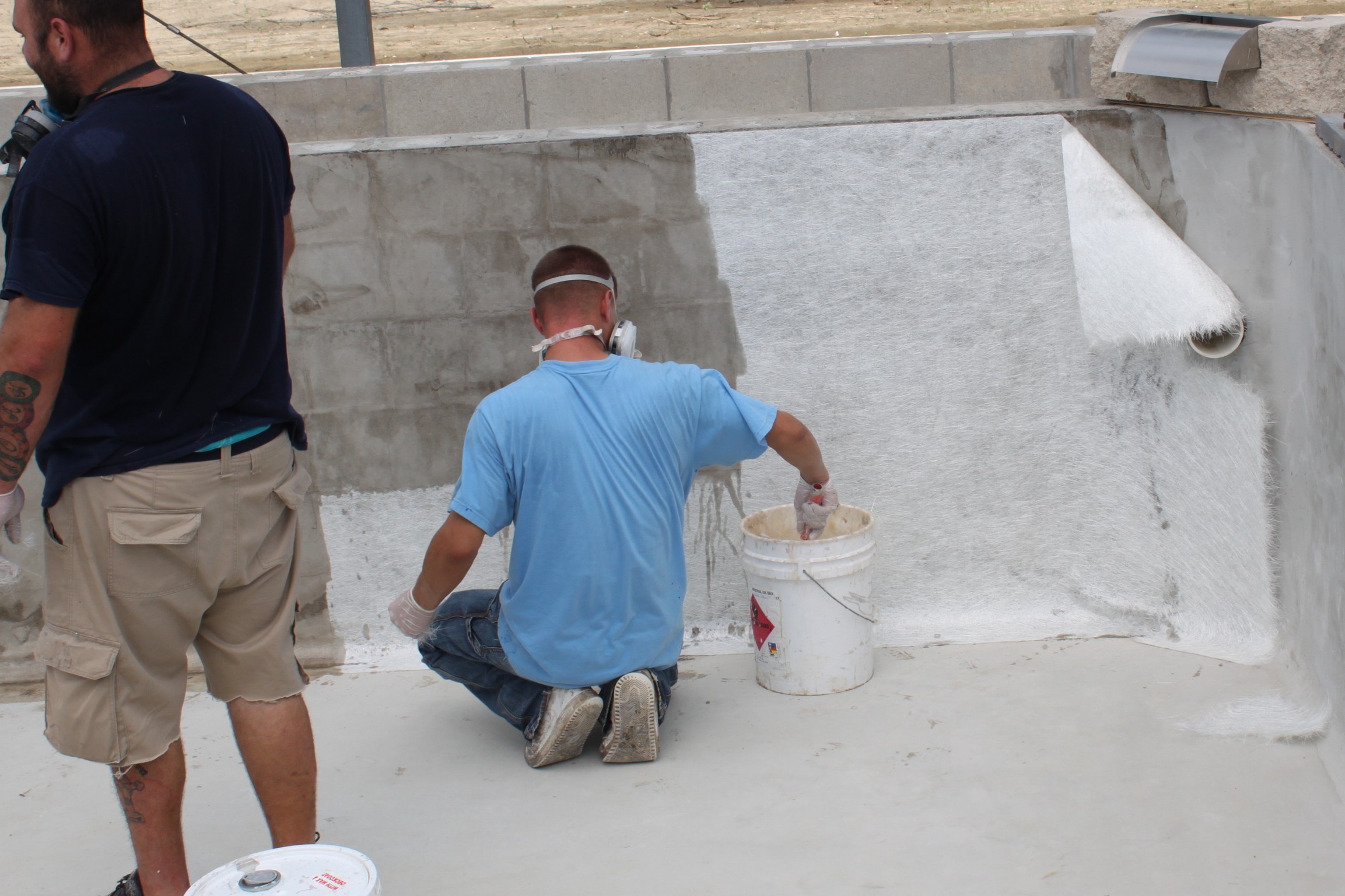 Нанесение композитного стеклопластика на стенки водоема