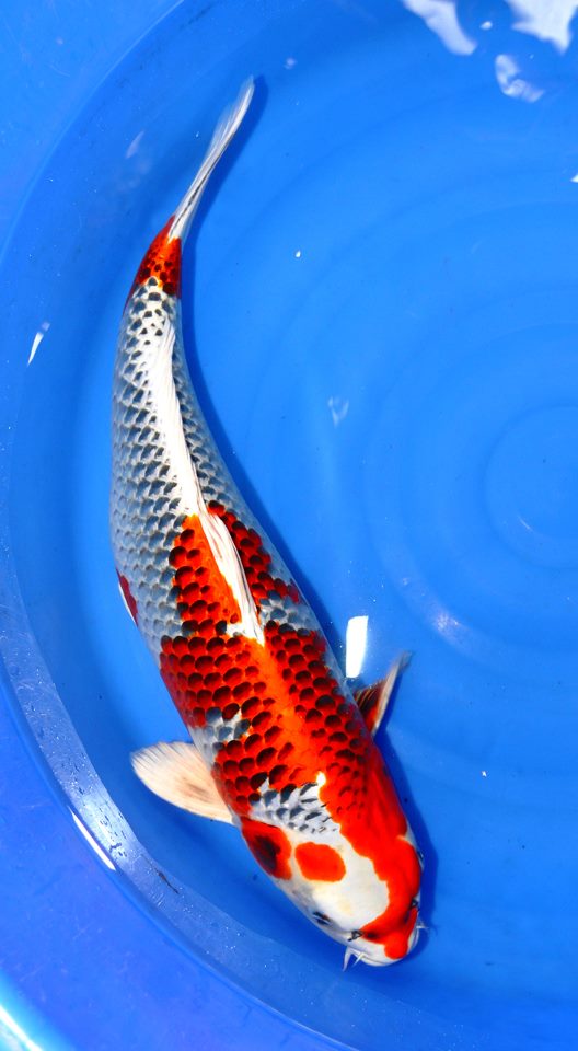 (Doitsu) Kikisui (кикусуи): в переводе это слово означает «водяная хризантема». По расцветке это платиновая рыба с красными пятнами (металлический кохаку).